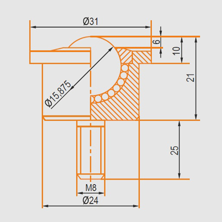 Bilele de transfer KO-T cu un știft filetat sunt concepute pentru a transfera sarcini de la 10 kg la 500 kg, nu mai rapid de 1 m / s.