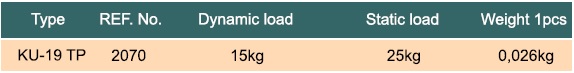 Bilele de transfer KU-TP cu știft filetat, strânse manual, sunt concepute pentru muncă ușoară și simplă. Ele pot transporta o sarcină în intervalul de la 15 kg la 25 kg, nu mai repede de 1 m / s.